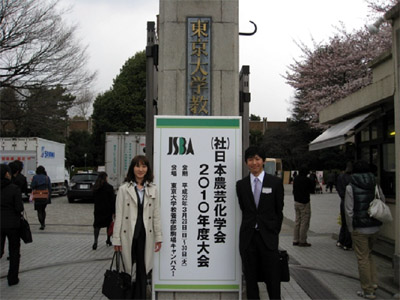 平成22年3月27日〜30日に東京大学において日本農芸化学会が開催されました。早川研では川良香さん、功刀伸夫君(修士2年生)、鈴木さやかさん、花輪圭太郎君(修士1年生)がそれぞれ口頭発表を行ないました。発表題目は下記のとおりです。また、それらのほか、放線菌のゲノム解析プロジェクト関連で、当研究室と東京大学発酵学教室や製品評価技術基盤機構と共同で行なわれている研究5件も発表されました。