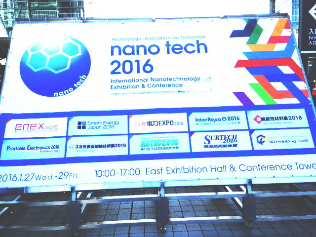 2016 年1 月27 日 ~29 日の3 日間、東京ビッグサイトにて、世界最大級の研究開発マーケットの展示会、 nano tech 2016 第15 回国際ナノテクノロジー総合展・技術会議が開催された。27 ヵ 国・地域より1,300 企業・団体が出展し、環境・エネルギー・素材、医療・健康、情報通信からエレクトロニクスまでの最新技術を発信した。