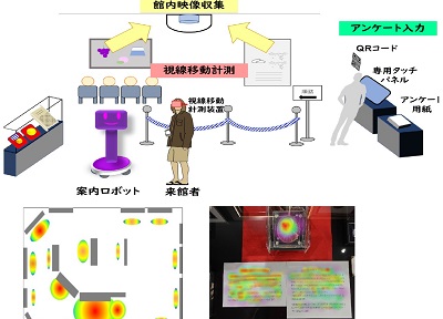 大村智記念学術館の来館者の動線と注目対象、来館者の属性(年齢、性別、居住地、職業)、満足度をパーソナルライフレコード(PLR)として収集し、案内ロボットの導入前後で動線の変化や注目対象の変化、満足度の変化を比較、検討する。