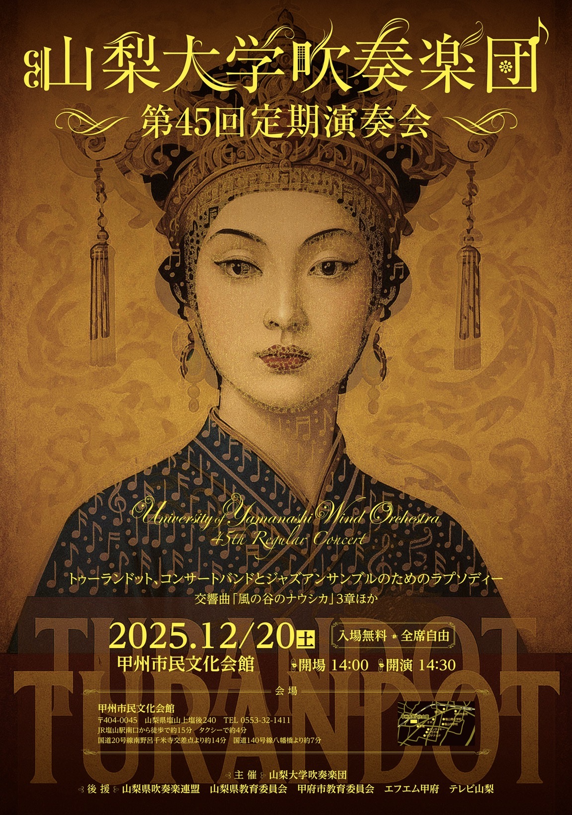 曲目:トゥーランドット、コンサートバンドとジャズアンサンブルのためのラプソディ、交響曲「風の谷のナウシカ」3章 ほか